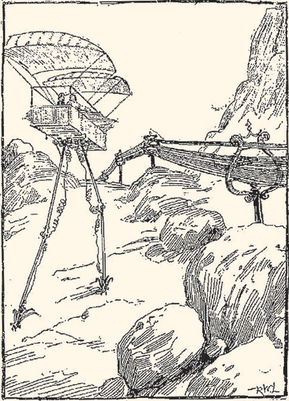 Путешествие на ходячем монгольфьере. Рисунок из газеты «Morning Times» (США), 1896 год.
