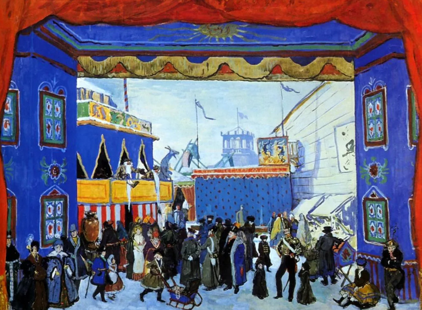 Иван Билибин известен в первую очередь своими книжными иллюстрациями к русским сказкам и былинам. Но проявил он себя и как театральный художник. Среди его работ — балетная сюита «Русские пляски». Об эскизах костюмов к этой постановке он писал: «Был ли красив этот костюм? Он был великолепен. Бывает красота движения и красота покоя. Взять хотя бы наш русский танец. Мужчина пляшет, как бес, охватывая головокружительные по быстроте коленца, лишь бы сломить величавое спокойствие центра танца — женщины, а она почти стоит на месте, в своем красивом наряде покоя, лишь слегка поводя плечами».