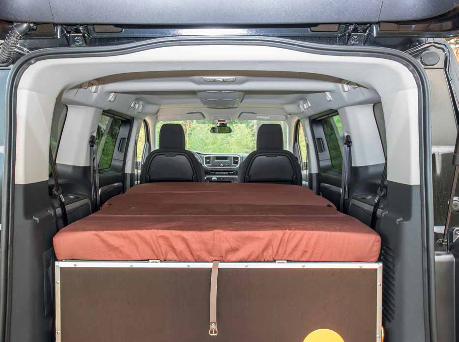 Peugeot Traveller 4х4 у нас доступен в удлинённой (5 309 мм) и стандартной (4 959 мм) версиях. Кроме общей длины микроавтобусы ничем не отличаются — колёсная база (3 275 мм) у них одинаковая, общий и 150-сильный двухлитровый турбодизель, и механическая шестиступенчатая коробка передач. Клиренс — 200 мм, угол въезда во всех версиях 23,2 градуса, а вот угол съезда стандартного «Тревеллер» (33,8 градуса) на 10,8 градусов больше, чем у длинного, так что для строительства внедорожного кемпера это наилучший вариант. Впрочем, создатели концепта решили, что строить ничего не нужно. В продаже полно готовых решений, из которых легко скомпоновать туристическую конфигурацию микроавтобуса.