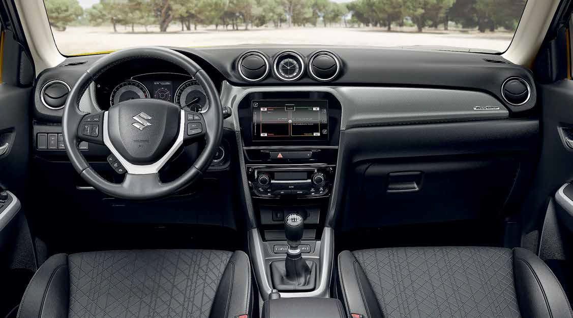 Но если внешность Seltos выглядит немного агрессивной, каким кажется всё юное и дерзкое, то дизайн Vitara отсылает нас к более спокойным временам, когда наша продуктовая корзина стоила процентов на семьдесят дешевле, чем сейчас. В Suzuki всё просто, понятно и максимально прагматично. Пластик одинаково ровной фактуры, простой блок управления однозонным климатом и крупные клавиши второстепенных функций. Но в этом классическом спокойствии есть и современные элементы, зачастую довольно забавные. На центральной консоли появился небольшой цветной экран, на который выводится важная информация о происходящем. И если переключать режимы движения, а их здесь три, плюс блокировка межосевой муфты, то в зависимости от выбранных настроек системы полного привода ALLGRIP SELECT на мониторе демонстрируется забавный мультик: вот Vitara едет по городу, вот она где-то в лесу, а вот – мчит по трассе. Кстати, не только анимированная трасса поможет почувствовать себя настоящим спортсменом – в помощь водителю кроссовера подрулевые лепестки в качестве намёка на не такой уж смиренный характер машины. Вверху центральной консоли – часы. Да не просто