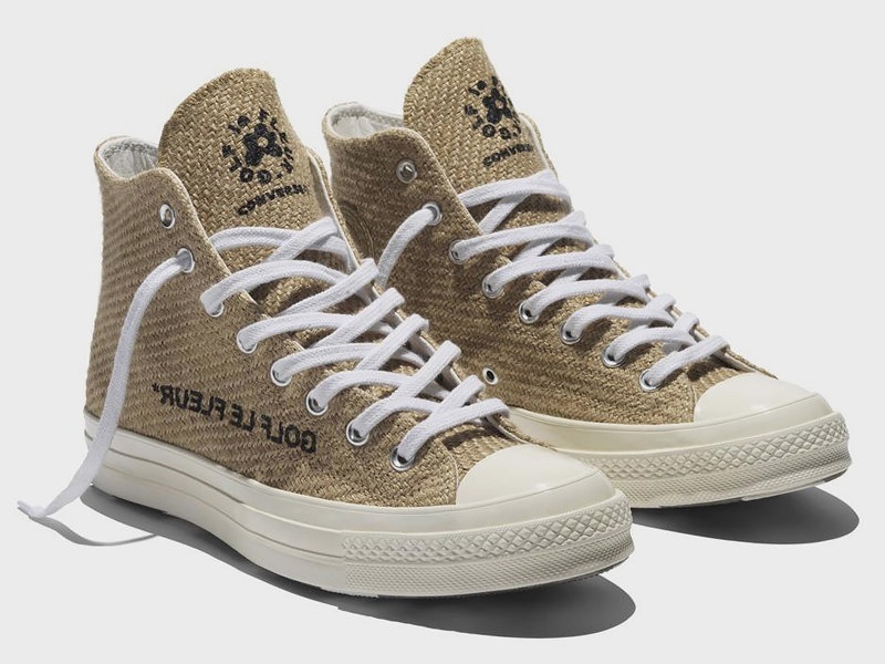 Рэпер Tyler, The Creator продолжает свою коллаборацию с Converse. В новом дропе представлены короткие кеды One Star с аппликацией в виде цветка, а также более универсальные Chuck Taylor 70 Hi — из практичного холста и мешковины. Очен грамотный выбор материалов на фоне непрекращающейся борьбы за экологию.