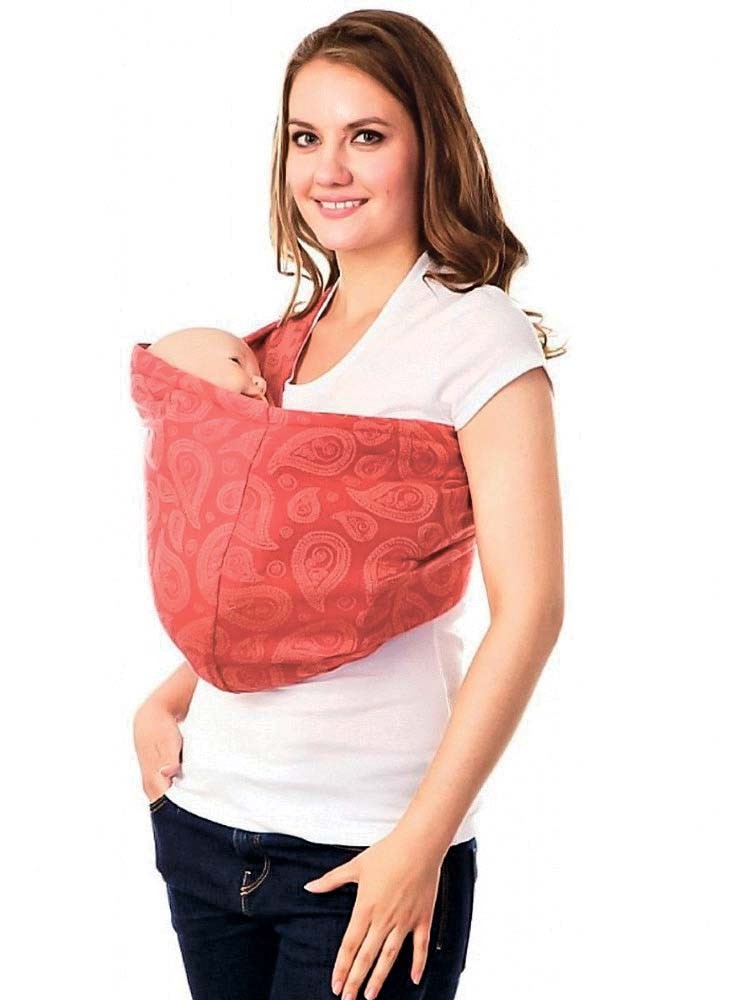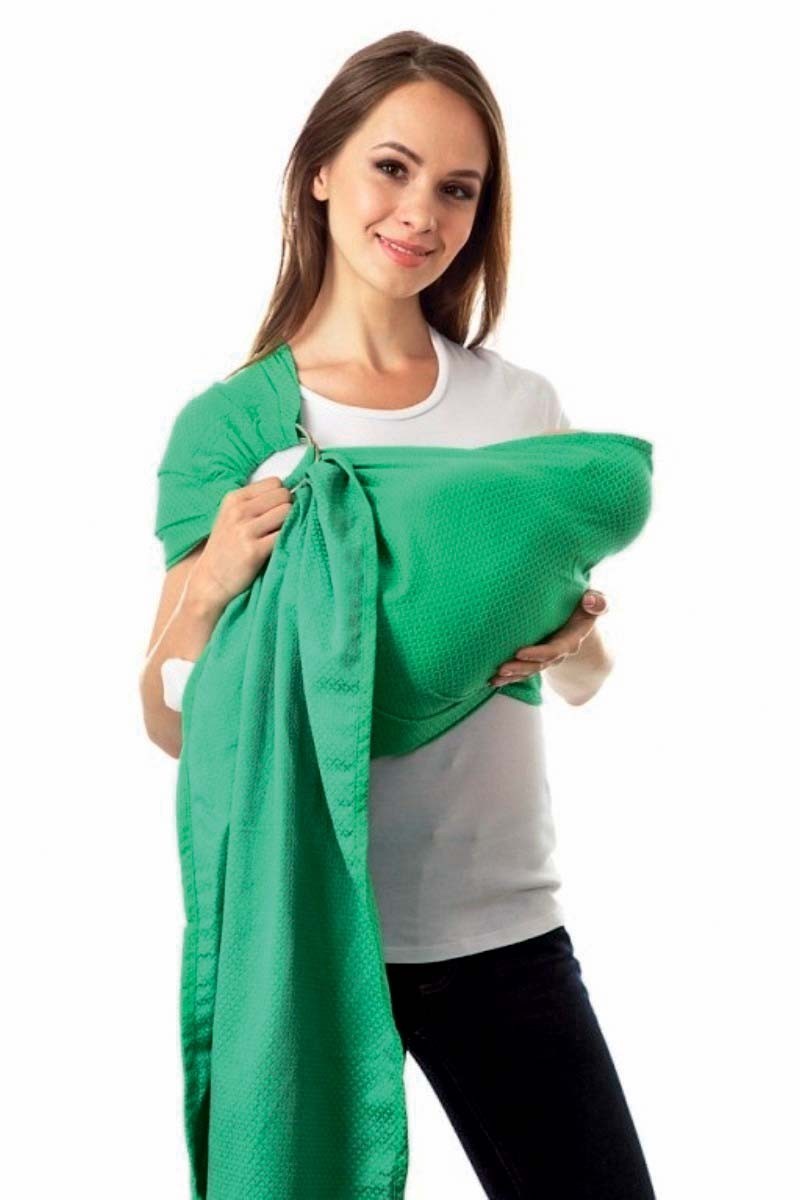 Это универсальная, очень удобная переноска, которая не требует от пользователя особых навыков с намотками и регулировками. Слинг представляет собой отрез ткани шириной 60–70 см и длиной 2–2,5 м. С одного конца («плечо» слинга) вшиты два прочных металлических или пластиковых кольца, другой конец («хвост» слинга) остается свободным. «Хвост» продевается через кольца и фиксируется ими – все, переноска готова к использованию. Мама надевает слинг на себя через плечо, затем укладывает малыша и затягивает свободный конец слинга, плотно прижимая ребенка к себе тканью. Подтягивая весь «хвост» целиком или только его края, вы регулируете натяжение слинга, таким образом, чтобы и вам, и вашему малышу было комфортно и безопасно.
