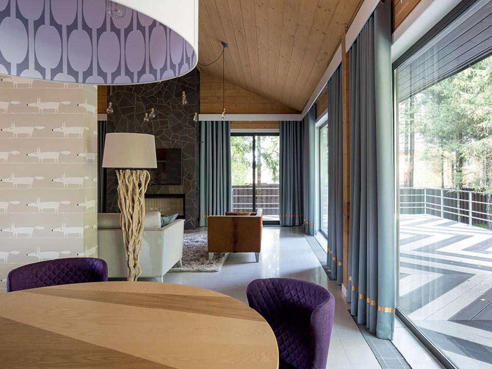 Началось все пять лет назад, когда супружеская пара приобрела участок и задумалась о строительстве дома. Работу они решили доверить профессионалам, перед которыми поставили непростую задачу: вписать постройку в ландшафт так, чтобы сохранить растущие вокруг деревья. “Хозяева хотели, чтобы дом был деревянным, но не напоминал избушку. Они представляли себе что-то современное и лаконичное”, — говорит Тарас. Проект дома TS Design разработали сами. Он получился компактным (двести семьдесят квадратных метров) и вытянутым (такую форму оказалось легче вписать в пространство между деревьями). Постройка состоит из двух объемов: просторного одноэтажного блока, который отдали под общую зону, и двухэтажного, где расположились все комнаты и санузлы. Спальни хозяев и их детей заняли второй этаж.