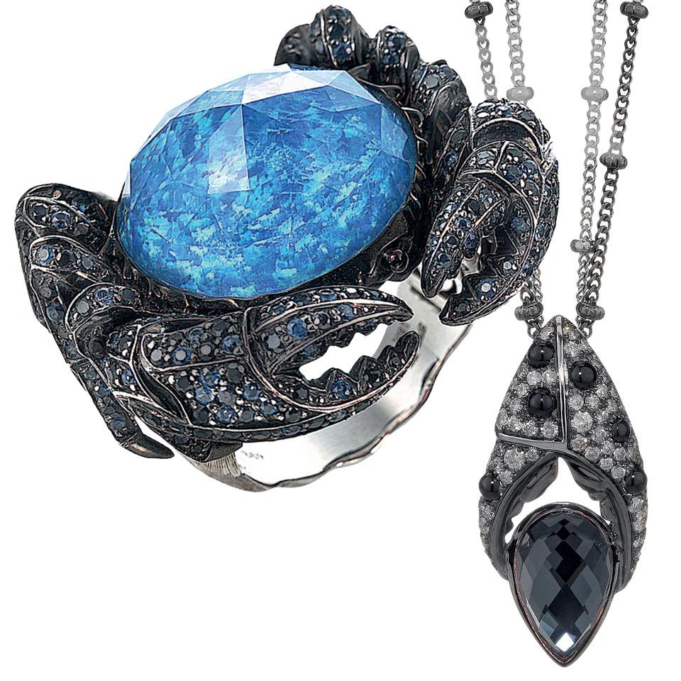 Украшения из коллекции Aqua испанской марки Carrera y Carerra напоминают буддистский символ инь-ян и так же, как он сам, отличаются двойственностью. На фото — одно и то же колье с разных сторон. Выбирайте, за кого вы сегодня играете — за черных или за белых? Украшение сделано из желтого золота, оникса, перламутра и бриллиантов.