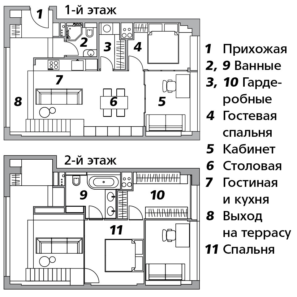 Несколько лет назад Анна Кокарева уже работала с этими заказчиками — оформляла для них таунхаус. Но, прожив за городом, они поняли, что не хотят тратить время на поездки в Москву и обратно, и решили переселиться в центр. Новое жилье они выбирали вместе с дизайнером. И выбрали совсем не то, что планировали: квартира в бывшем индустриальном здании, перестроенном в ЖК Loftec, заметно меньше, чем требовалось. По плану в ней всего 50 м², но к этим метрам прилагалась огромная, тоже пятидесятиметровая, терраса. Устоять было невозможно. А жилую площадь Анна и работавший с ней над проектом Станислав Снегир “нарастили”, воспользовавшись высотой потолков — 4,5 метра.