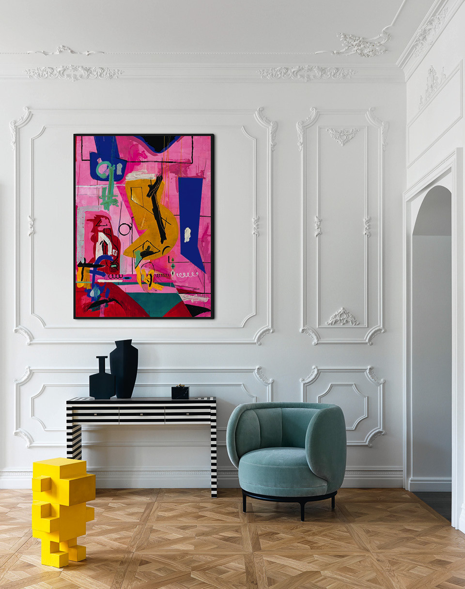 С творчеством Дарьи Майер хозяйка этой квартиры имела возможность познакомиться не только по фотографиям в журналах и интернете, но и лично. Она регулярно бывает в гостях у своей сестры, которая живет в квартире по дизайну Дарьи, украсившей обложку сентябрьского номера 2019 года. Герои этой публикации оценили подход Майер к мелочам, особенно их впечатлили цветные глянцевые плинтусы и дверные наличники, а также любовь дизайнера к искусству. Они полностью такой подход разделяют — довольно давно начали собирать коллекцию и помогают объединению “Новые городские художники”, покупая работы детей с особой ментальностью.
