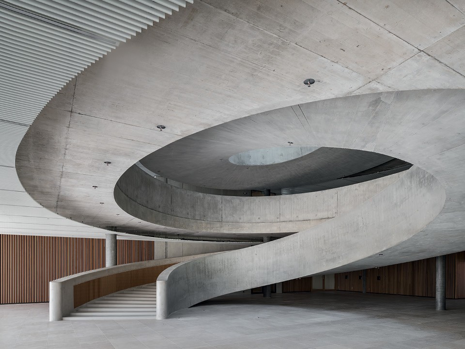 Компания Hapimag обзавелась новой штаб-квартирой в швейцарском городе Штайнхаузене, в которой главным элементом стало не рабочее пространство, а лестница. Огромная бетонная рампа соединяет все этажи нового офиса, а атриум, проходящий по центру, пропускает большое количество дневного света во все пространства, что очень выгодно для сотрудников — им практически не нужно утомляющее искусственное освещение. Авторы проекта, бюро Hildebrand, также организовали общественные зоны на всех этажах, а основой для них стали как раз завитки этой массивной лестницы — и никакие переговорные не нужны. В общем, если вам хочется впечатлить сотрудников и гостей офиса, а также сэкономить место, берите за основу проекта гигантскую бетонную лестницу.
