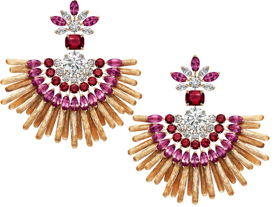 Драгоценные камни могут выступать в роли красок — ювелиры Piaget решили изобразить с их помощью оазис в пустыне. В новой коллекции Golden Oasis есть, например, серьги Desert Sunbow — так мастера представляют себе радугу.