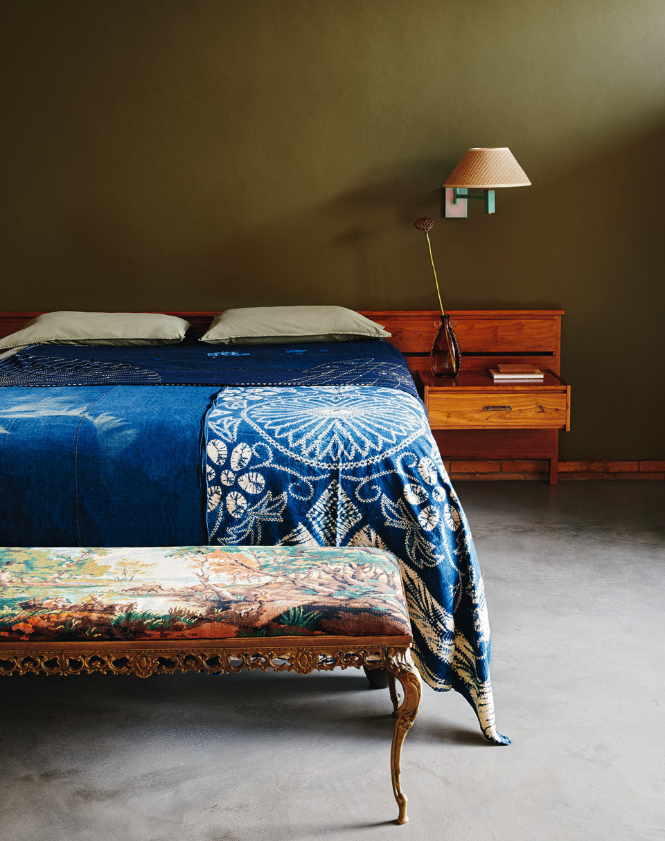 Меблировка в доме довольно эклектичная — Лезанн привезла сюда вещи, которые собирала последние лет шесть-семь. Тут есть и мебель в стиле середины ХХ века, и современные предметы, часть из которых сделали друзья хозяйки. Например, многие светильники придумал дизайнер Аугуст Де Вет, который занимается освещением на ее фэшн-шоу, а некоторые картины на стенах — коллаборация модели Леди Сколли и художницы Марлен Хетти Стейн, которая помогала оформлять показы Viviers весна-лето 2020. В целом подборка искусства в доме неплохо иллюстрирует текущую ситуацию на южноафриканской арт-сцене. “Я люблю покупать работы на выставках выпускников, — говорит Лезанн. — Это хороший способ увидеть новые таланты”.
