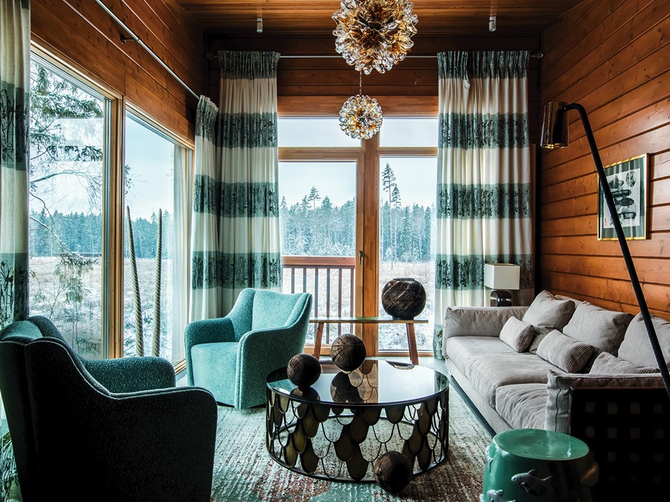 Удовольствие оказалось делом ответственным и непростым. Хозяева несколько раз меняли строителей, и в итоге четырехсотметровое здание из бруса возвела компания ArtWoodProject, которая специализируется на деревянной архитектуре и построила почти все дома в поселке. Печка в бане не обычная, а высокотехнологичная. “Теперь самый крутой печник на Руси — англичанин, — смеется Ирина. — Его зовут Джеймс Ларкин, он придумал свою конструкцию топки, которая работает по принципу