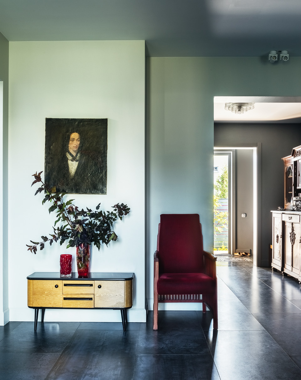 За Аллой Шумейко закрепилось амплуа мастера по французской классике и антиквариату, хотя проекты в других стилях в ее портфолио тоже есть. Одно из доказательств — собственный дом декоратора. Он современный, лаконичный, наполнен искусством и любимыми винтажными предметами. Участок для строительства Алла купила недалеко от Москвы, в том же поселке, где уже живут ее родители. Два с половиной года он стоял пустым, пока декоратор решала, какой построить дом и из чего. От сруба она отказалась сразу. “Опыт создания интерьеров в деревянных домах показал, что там очень много ограничений для творческой свободы. Мне хотелось, чтобы пространство было чистым, — рассказывает Шумейко. — Меня вдохновляет бельгийская и голландская архитектура, их сдержанные цвета — это и стало отправной точкой для моего проекта”. Так на участке появился небольшой двухэтажный дом с внутренним двором, где располагается терраса, закрытая от посторонних глаз.