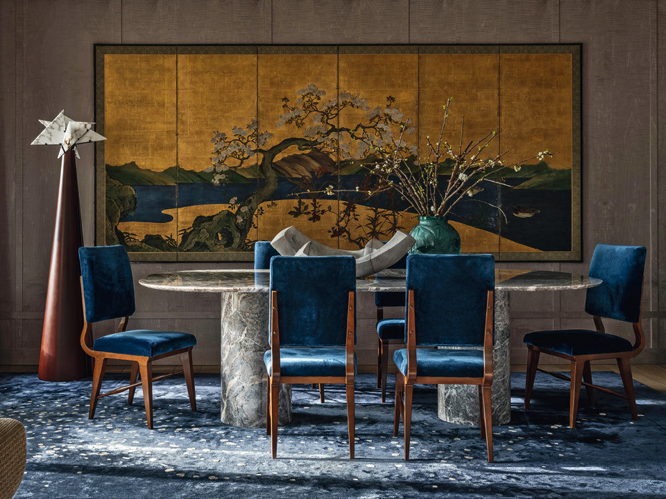 В этом проекте у Ираклия Зария получился неожиданный, но красивый союз — дизайнерской классики ХХ века и работ советских художников-нонконформистов.