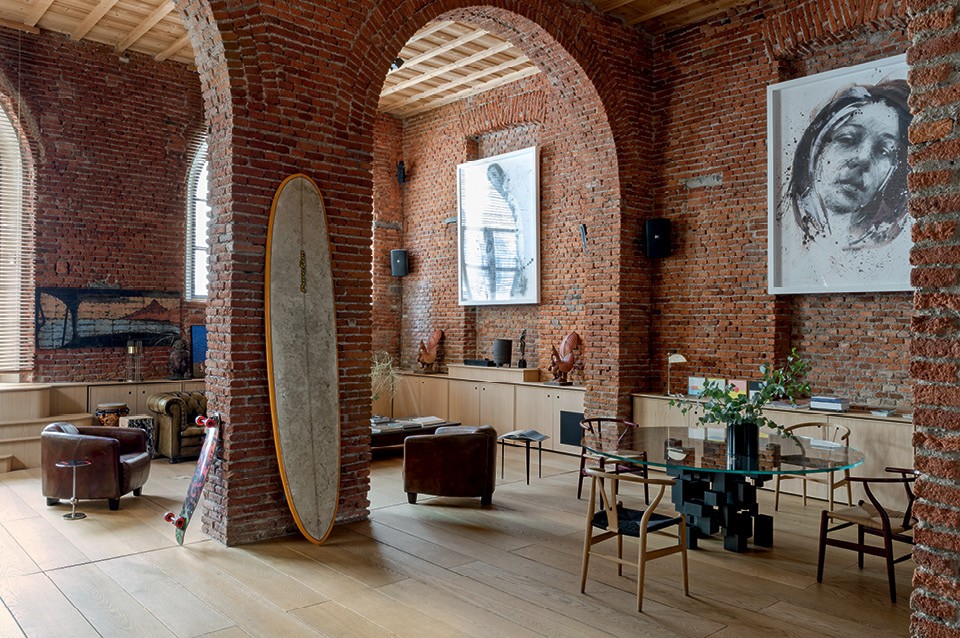С фактурой ему очень повезло: это бывшее складское помещение с высоченными потолками, окнами и арочными проемами. Томмазо поместил хозяйскую спальню с гардеробной и ванной комнатой на антресоли, под ней расположил кухню и кабинет, а большую часть пространства внизу оставил свободным. Во входной зоне Фантони сделал ступени амфитеатром, под ними оборудованы дополнительные места для хранения. Теперь в общей зоне возможны два варианта развития событий: ступени могут быть сценой, в то время как зрители комфортно устраиваются на диванах и в креслах, или, наоборот, они используются как посадочные