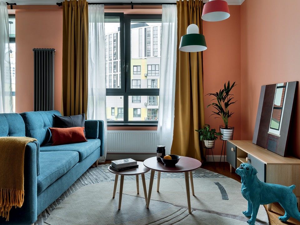 “Цветовая гамма этой квартиры навеяна Средней Азией, где мои заказчики жили около двух лет, работая по контракту, — рассказывает дизайнер Светлана Хабеева. — Я подумала, что в хмурой Москве им будет не хватать солнца, цвета, всей этой восточной пряности. Так появились теплые абрикосовые тона, бирюзовые оттенки и яркая цветная плитка”. Заказчики Светланы, молодая пара с двумя маленькими детьми, купили квартиру в новостройке и уехали работать, рассчитывая, что как раз к моменту возвращения у них все будет полностью готово. Работы по проекту, от согласования планировки до выбора цвета стен, обсуждались удаленно, что оказалось не так-то просто, учитывая, что гамма в квартире сложная, а цветопередача современных смартфонов по-прежнему сильно искажает действительность. “На телефонах строителей краски получались каких-то совсем радикальных цветов. Мне приходилось мчаться на стройку, чтобы успокоить заказчиков, которые отказывались жить среди ярко-розовых и морковных оттенков”, — вспоминает дизайнер.
