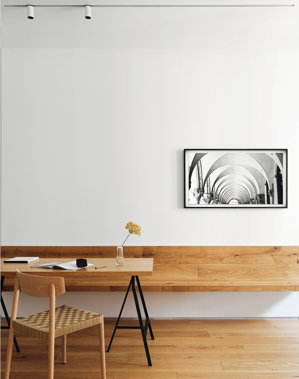 Площадь этой квартиры всего шестьдесят квадратных метров. Когда архитектор понял, что все желаемое не помещается, решил, что надо переосмыслить образ жизни. “К примеру, из шестнадцати пар кроссовок я ношу только две, а в шкафу у меня висело много одежды, которую я не надевал. После небольшой ревизии и анализа стало ясно, что можно уместиться и в пространстве вдвое меньше. Многие полки у нас до сих пор пустые”, — рассказывает Алексей. Над интерьером он работал вместе с супругой и во всем с ней соглашался. “Бывало, я сомневался в ее предложениях, но в итоге она всегда оказывалась права”, — добавляет он.