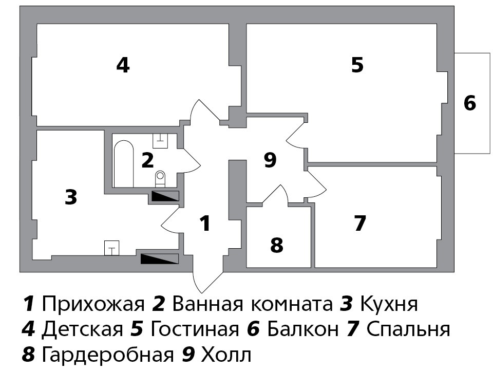 Квартира расположена в отреставрированном доме, где заменили окна и все коммуникации. Изначальную планировку Заика поменял: она была интересной — круговой, но для семьи из трех человек не очень подходила. Теперь здесь есть кухня, гостиная, детская, спальня и большая гардеробная. “Я не люблю шкафы и хотел обойтись без них, чтобы не захламлять пространство”, — объясняет Егор.