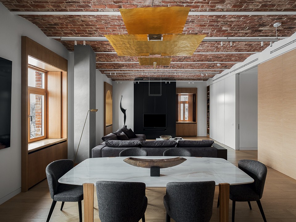 В московской квартире по проекту архитектурного бюро Studioplan четырнадцать окон и открытая планировка, чтобы большая их часть была на виду