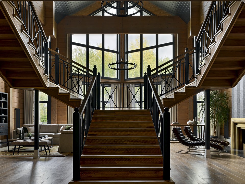 С Олесей Федоренко хозяева огромного, в несколько гектаров, подмосковного участка были знакомы шапочно — их дети учатся в одной школе, — но были в курсе, чем она занимается. “Заказчица позвонила мне: “Олеся, спаси!” — вспоминает дизайнер. К этому моменту на участке имелся подвал, наполовину залитый водой, недостроенный первый этаж и торчащий посреди него металлический остов будущей лестницы. Заказчики успели купить тринадцать тонн керамической плитки и заказать своему знакомому из Средней Азии ограждения лестницы из массива ореха. “Когда нам привезли резные балясины в восточном стиле, стало понятно, что это вообще никуда не вписывается”, — вспоминает Олеся, которая сразу предупредила заказчиков, что большая часть этого “наследства” им явно не пригодится. Они, впрочем, и не спорили — проект удалось спасти благодаря слаженной работе всех героев этой истории. Даже строители, которые сперва увидели в дизайнере конкурентку, быстро вошли в составленный ею график. “Обычно на квартиру 120 м² уходит десять месяцев работы,