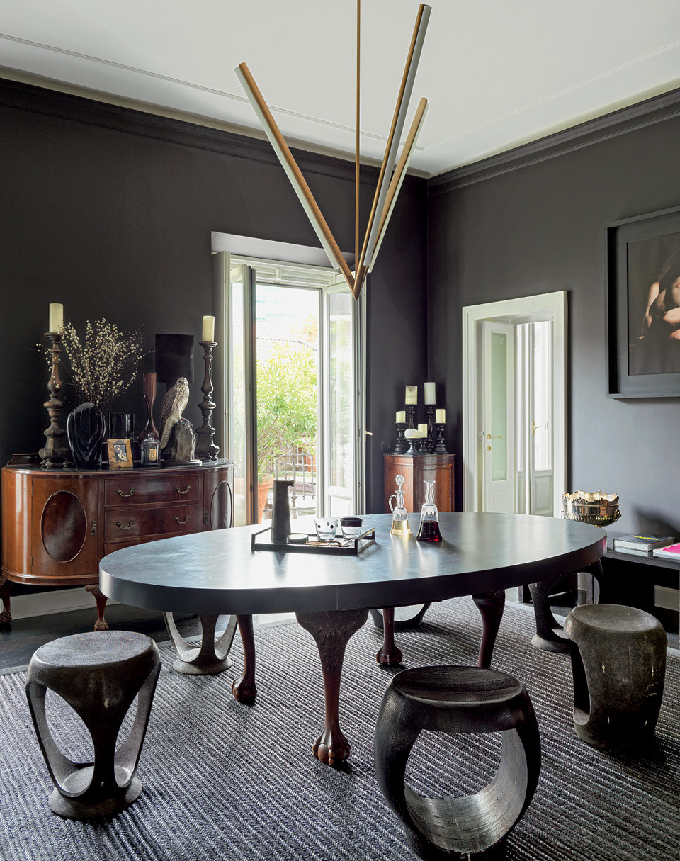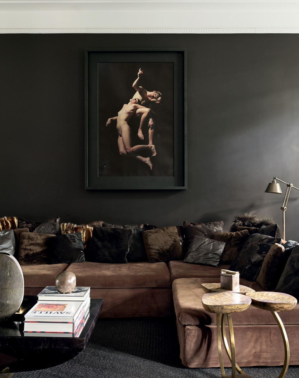 Британский дизайнер Нил Барретт решил, что яркие краски дома не нужны, и стены своей миланской квартиры выкрасил в темно-коричневый.