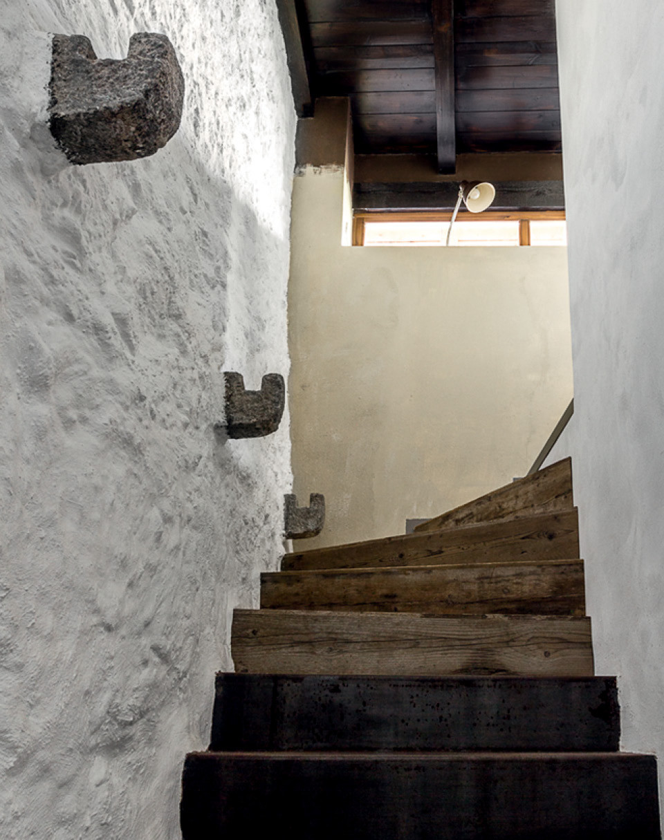 Этому домику на озере Комо много столетий: его нижний этаж каменный, относится к Средневековью, а второй был надстроен из кирпича в начале 2000‑х и увеличил площадь вдвое — до 75 м². До того как заказчики Петра Григораша и Дарьи Блаженковой купили дом, он использовался как офис. Из исторических деталей сохранились только каменные стены и живописные деревянные балки. Архитекторам, конечно же, хотелось такую фактуру оставить на виду. “Но оказалось, что стена у лестницы примыкает к холму и в жару на ней образуется конденсат. Мы начали ремонт летом и увидели, что по ней буквально течет ручей”, — рассказывает Петр. Однако им с Дарьей удалось найти специалиста, который предложил уникальный теплоизоляционный материал из микроскопических керамических шариков. “Два миллиметра этого покрытия заменяют несколько сантиметров стандартного утеплителя, оно похоже на плотную белую краску, поэтому сверху мы ничего не наносили”, — объясняет Григораш.