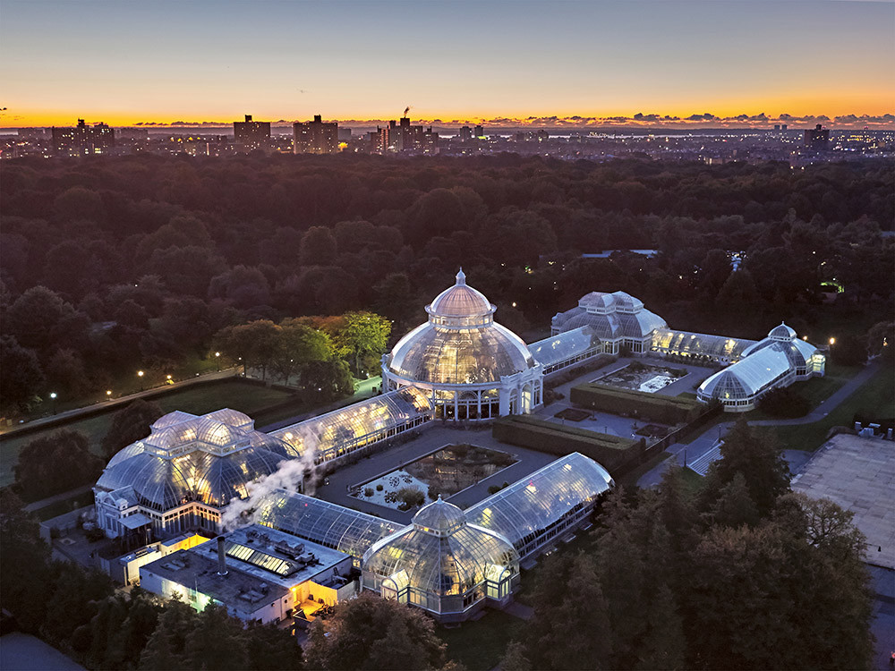 Нью-Йоркский ботанический сад строили под впечатлением от британских Королевских садов в Кью — с американским размахом. В 1880-х биолог, профессор Колумбийского университета Натаниэль Лорд Бриттон с женой, тоже ученым-биологом, Гертрудой Элизабет Найт вернулся из поездки в Великобританию с мечтой создать в Нью-Йорке ботанический сад. Неизвестно, что поразило их больше — английские сады или главное строительное чудо того времени — Пальмовая оранжерея. Почти за полвека до возведения Эйфелевой башни архитектор Децимус Бертон и инженер Ричард Тернер построили в Кью самую большую оранжерею в мире. Тернер был пионером в использовании металлоконструкций, человеком смелым и оригинально мыслящим: он позаимствовал методы и инженерные решения у судостроительства, поэтому Пальмовая оранжерея похожа на перевернутый корпус корабля. Такая форма позволила возвести в Кью огромное для того времени здание из железа и стекла, не используя подпорные колонны.