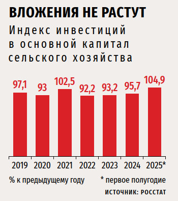 Тем не менее управляющий директор Центра компетенций в АПК «Рексофт Консалтинг» Дмитрий Краснов характеризует инвестиционную активность в АПК в этом году как «удержание общего уровня инвестиций при изменении их структуры». Этот уровень во многом поддерживается льготным кредитованием, добавляет он, напоминая, что в 2025 году правительство довело объем средств, направленных на субсидирование льготных кредитов, до более чем 187,7 млрд руб.