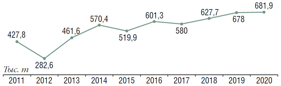 Производство винограда тоже ежегодно прибавляет (за исключением 2017 года, когда производители столкнулись с плохими погодными условиями). В этом году урожай ожидается выше, чем в 2020-м, когда было собрано около 682 тыс. т. Сильные дожди летом на юге восполнили пробелы засушливой зимы и весны, а аномально жаркая погода положительно повлияла на качество ягод и сахаронакопление, сообщает Гольфанд. «Хотя если в первый месяц осени сохранится высокая температура воздуха, это может усложнить организацию уборки и переработки ягоды — возможно одновременное созревание ранних и средних, средних и поздних сортов винограда», — предупреждала эксперт в начале сентября. Союз виноградарей и виноделов ожидает урожай примерно на уровне прошлого года. Минсельхоз США летом прогнозировал, что производство винограда в России может незначительно уменьшиться из-за засухи в некоторых регионах.