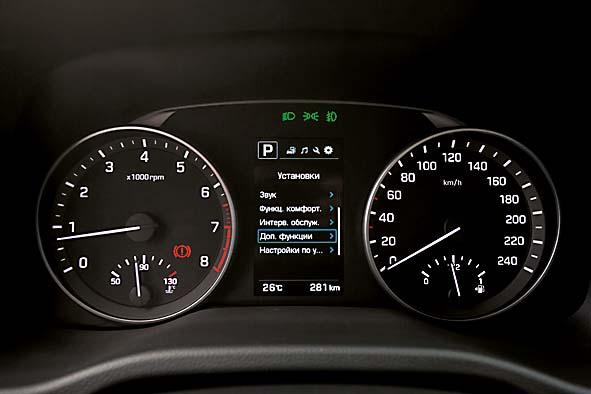 Трудно обойти этот факт стороной: выглядит Elantra «на все деньги». Таких изящных фар с дневными ходовыми огнями в стиле ягуаровских J-Blade в сегменте нет ни у кого. Задняя диодная светотехника тоже выглядит очень круто, правда, и стоит изрядно: она входит только в пакет Style за 80 000 руб., а его можно заказать лишь в дополнение к максимальной комплектации с 2,0-литровым мотором и автоматом. Еще в этом пакете есть 17-дюймовые колеса, ксенон, панель приборов с большим цветным экраном и бесключевой доступ, который приветливо подсвечивает дверные ручки и раскладывает зеркала, стоит вам приблизиться к машине. Немало, если такие опции вас интересуют.