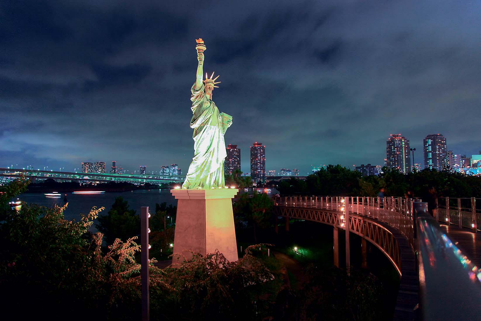 Итак, мы на Одайбе. Это молодой район, построенный в Токийском заливе буквально на переработанных отходах – самом настоящем мусоре. Здесь есть торговые комплексы, музеи, офисы, отели, огромное колесо обозрения Palette Town и гигантский робот Гандам. На Одайбе нет суеты, которая царит в центре города, здесь можно прогуляться по набережной залива, а также над ней – по пешеходным улицам примерно на уровне третьего этажа. По фотографиям это место часто путают с… Нью-Йорком, ведь именно на Одайбе установлена уменьшенная копия Статуи Свободы. Непременно стоит побывать здесь вечером, проехав по монорельсовой дороге линии Юрикамомэ, которая проходит через Радужный мост, а затем и через весь остров. Поезда тут автоматические, без машинистов – значит, можно смело занимать панорамное место в первом вагоне и любоваться видами. Также на Одайбе проходят два этапа чемпионата D1 Grand Prix по дрифтингу: весной и осенью.