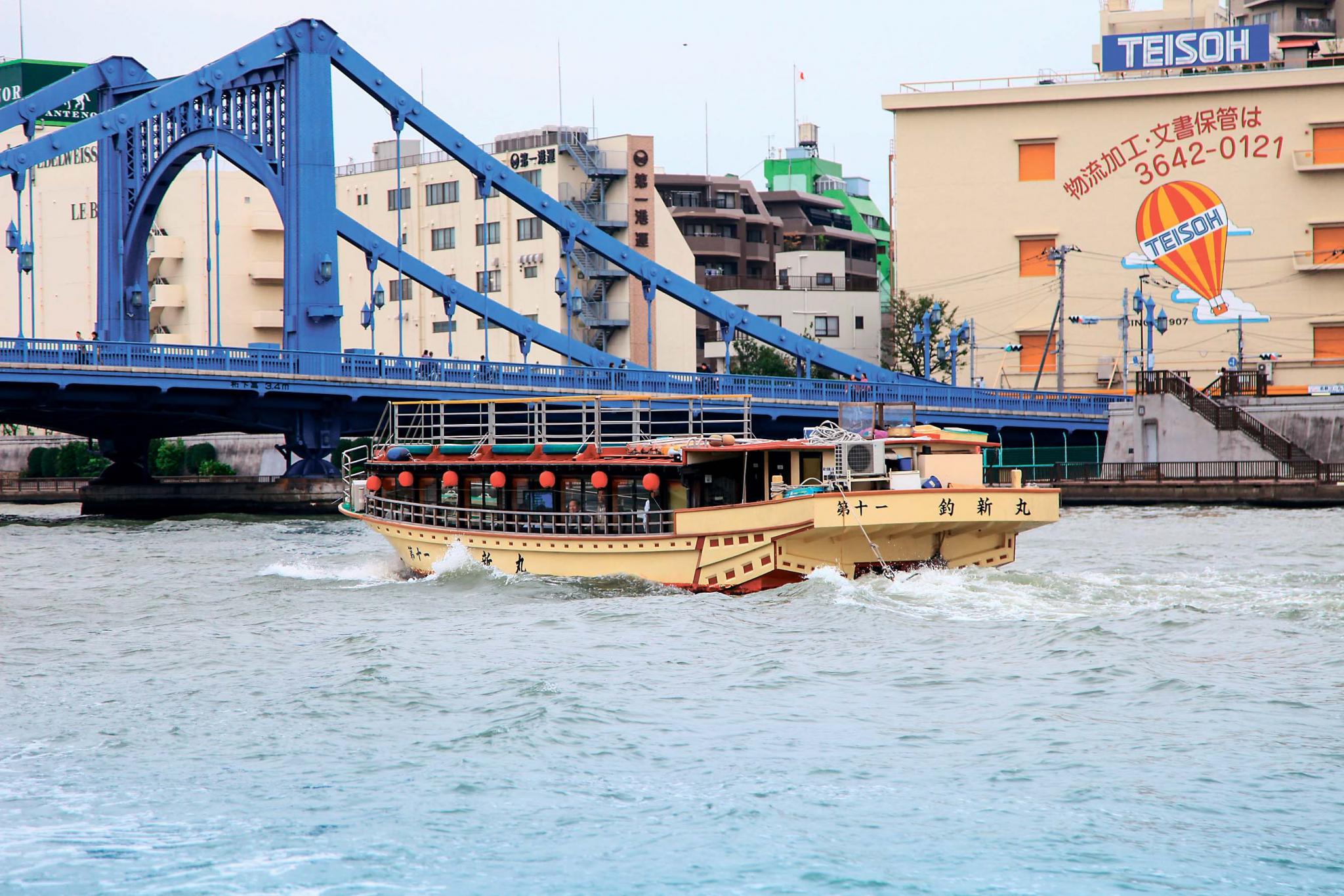 Отправимся дальше. Выйдя на станции Асакуса и пройдя немного пешком, мы попали в знаменитый торговый квартал Накамисе, раскинувшийся перед храмом Сэнсодзи. Кстати, именно тут самые дешевые сувениры в Токио. Наибольшей популярностью пользуются талисманы манеки неко («денежный котик» с поднятой лапой), кимоно-юкаты, традиционные зонтики и деревянные головы богов. Совершив обряд омовения в храме, идем к причалу, расположенному неподалеку. Небольшие прогулочные кораблики курсируют по всевозможным маршрутам, наш – по реке Сумида к порту Токио. По пути можно полюбоваться красотами города и многочисленными мостами. Сделав остановку у парка Хамарику и перед штаб-квартирой Toshiba, мы берем курс на искусственный остров Одайба. Первое, что открывается взгляду, – футуристическое здание корпорации Fuji TV, спроектированное известным японским архитектором Кэндзо Тангэ в 1997 году. В нем на высоте 125 м расположена смотровая площадка и музей.