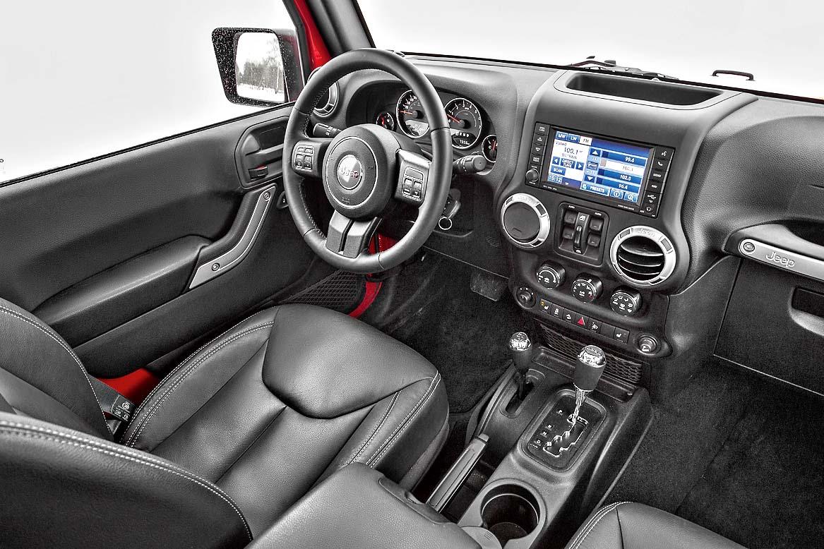 Комплектаций всего две: Sahara и, как в нашем случае, Rubicon. У такого Wrangler передаточное отношение понижающей передачи увеличено до 4:1 (против 2,72:1 у Sahara), есть блокировки обоих межколесных дифференциалов и отключаемые стабилизаторы поперечной устойчивости, которые можно «распустить» для преодоления сложного рельефа на бездорожье. В перечень стандартного оборудования для Rubicon входит и пластиковая жесткая крыша. На Sahara это опция. Набор из мягкого и жесткого верха потребует доплаты в любом случае – для пятидверной машины это 90 000 руб.