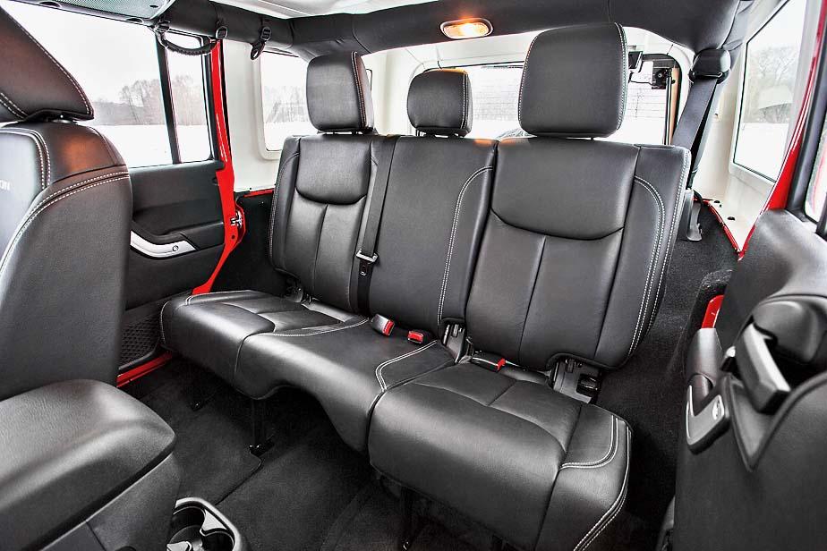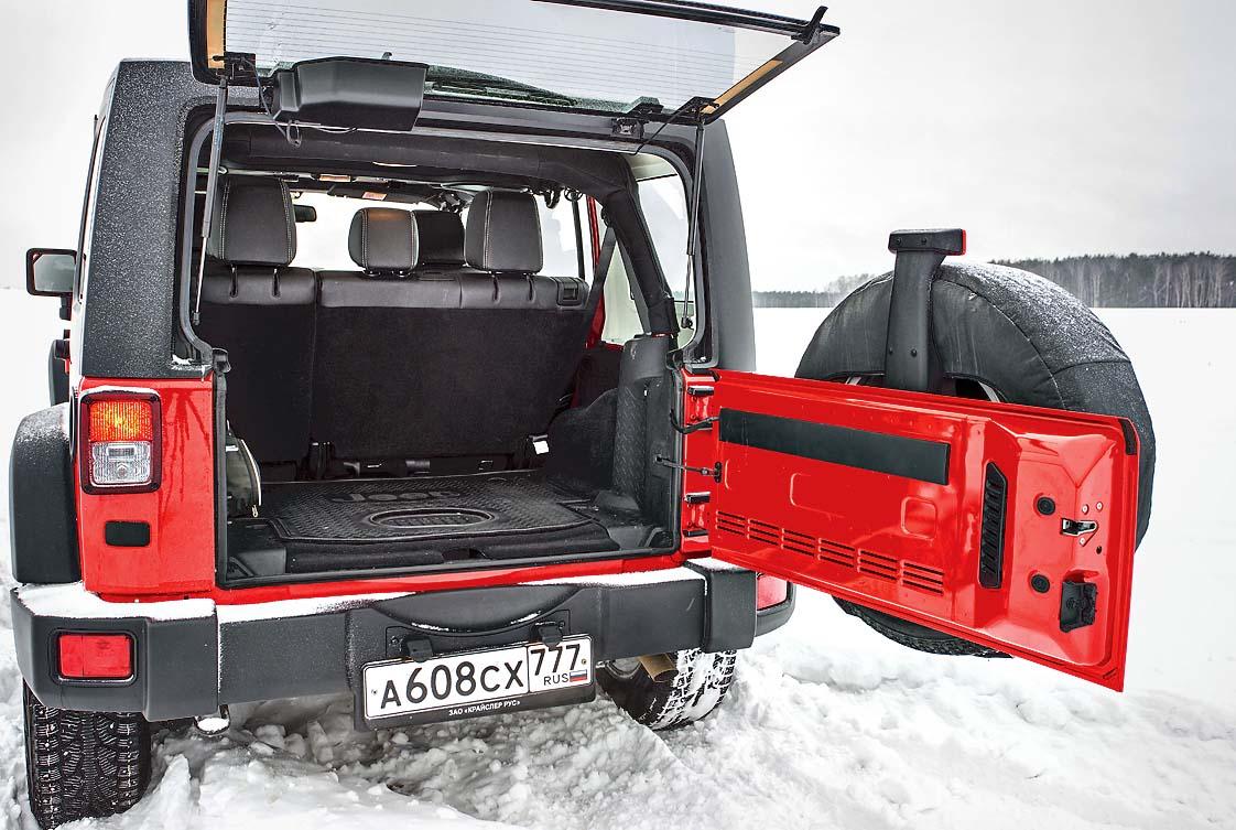 Проем задних дверей Unlimited достаточно широк, нет проблем у него и с размещением багажа – только с тяжелой «калиткой», на которую навешано запасное колесо, следует обращаться осторожно. Динамические возможности Wrangler Unlimited достойны уважения: за дополнительные острые ощущения вдобавок к «паспортным» 8,9 с до 100 км/ч ответственны рев 284-сильного V6, «гуляющий» на раме и неразрезных мостах кузов, да гул встречного ветра. Впрочем, ничего пугающего в поведении Jeep на асфальте нет, но, разумеется, приходится быть осмотрительным и не допускать резких движений.