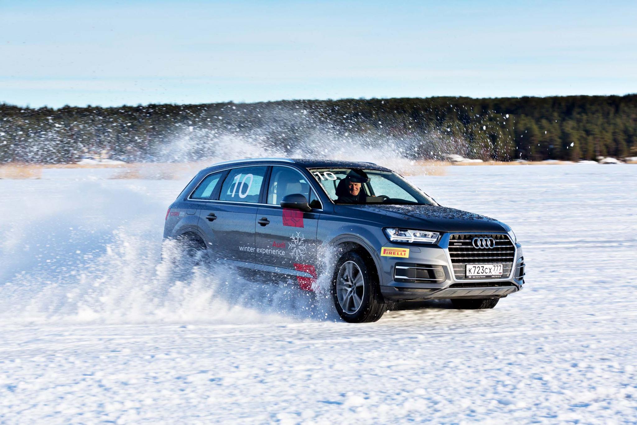 Зимние курсы экстремального вождения «Школа quattro» Audi проводит не первый год. Их география довольно широка – от Москвы до Ханты-Мансийска. В этом году немецкая компания осваивала Карелию на Audi Q7. Курс рассчитан на три дня и, поверьте, этого времени достаточно, чтобы научиться очень многому. Специально для зимней школы Audi на льду Ладожского озера «построили» огромную учебную трассу – ее длина свыше 20 км. За всеми действиями учеников пристально следят шесть инструкторов, работающих под руководством заслуженного мастера спорта Евгения Васина. От их глаз не скроется ни одна промашка – стоит хоть немного схалтурить и рация оживает: «Номер четыре, активнее работаем рулем» или «Раньше входим в поворот!» И тут никто не собирается вас жалеть, так что сетовать на усталость бессмысленно. Комментарии инструкторов порой бывают довольно резкими. Стоит случайно выехать за пределы расчищенной трассы, как слышишь вопрос, зачем это ты решил «распахать огород». А бывают и более жесткие замечания! Иногда становится обидно, чаще – смешно. Но эти едкие комментарии помогают сосредоточиться и взять себя в руки, даже когда ничего не получается.