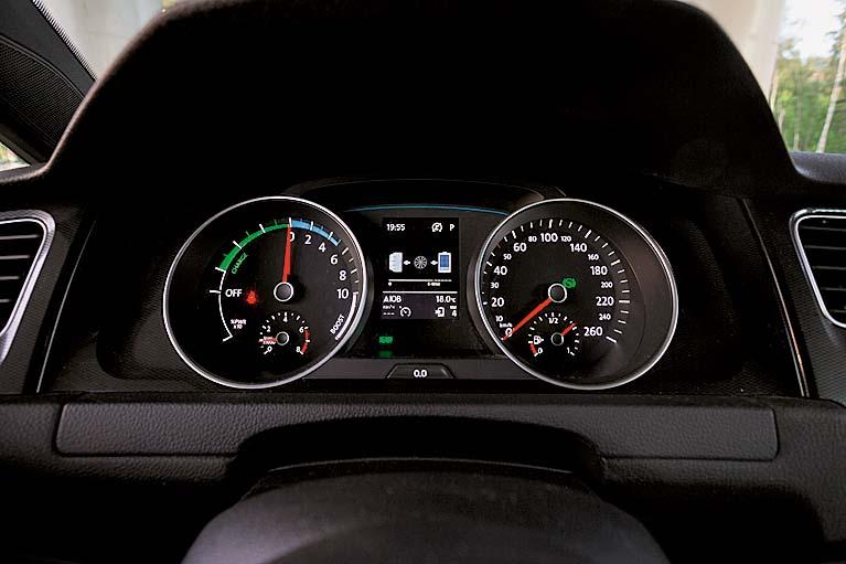 Правда, при пустой батарее GTE превращается в обычный 150-сильный «бензиномобиль» с соответствующим аппетитом. Можно ездить только на двигателе внутреннего сгорания, что я был вынужден делать, отправившись за пятьсот верст от Москвы. Этим, кстати, и объясняется итоговый результат расхода топлива. Правда, он мог бы быть чуточку меньше. Почему? Просто этот Golf почти всегда готов кратковременно выдать все свои 204 л.с. и 350 Нм момента, а для этого ему нужен хоть какой-то запас энергии в батарее. И автомобиль заряжает ее от бензинового мотора.