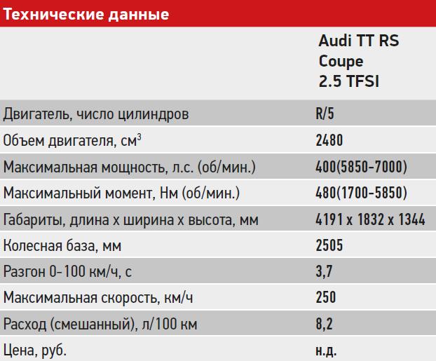 Продажи Audi TT RS Coupe, по предварительным данным, стартуют в России в первой половине следующего года. Скорее всего, запуск модели на нашем рынке приурочат к открытию летнего сезона. Однако к нам, к сожалению, привезут лишь закрытую версию Coupe. А вот родстер вряд ли доедет до России. В представительстве немецкой марки говорят, что этот вопрос окончательно будет решен ближе к весне, но шансы увидеть на наших улицах открытую версию TT RS крайне малы.