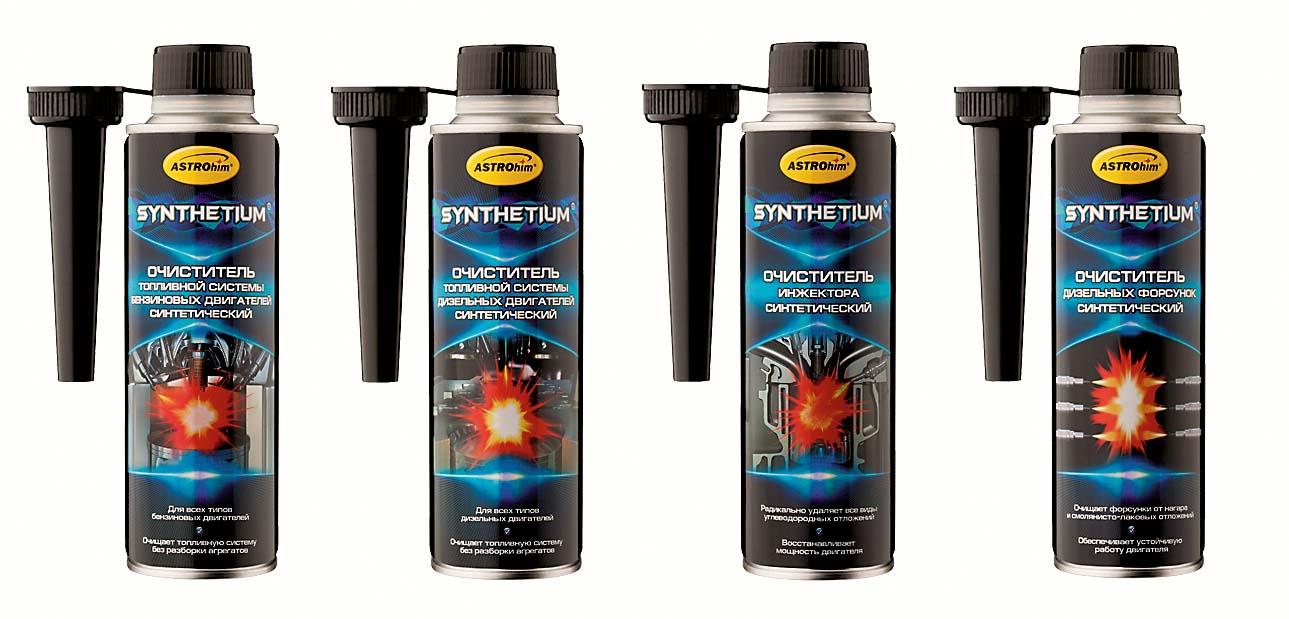 Впрочем, сейчас на рынке появилась достойная альтернатива зарубежным очистителям топливных систем. Речь идет о продукции серии Synthetium (Синтетиум), выпускаемой компанией «Астрохим». Присадки данной линейки изготавливаются по технологии и с использованием сырья химического концерна BASF (БАСФ). При этом их цена (ориентировочно 200-250 руб.) в несколько раз ниже, чем у импортных аналогов. Важной особенностью присадок Synthetium является их мягкое воздействие на топливную систему, в результате чего загрязнения не отслаиваются, а растворяются в топливе. А входящие в состав присадок «промоутеры горения» обеспечивают полное сжигание всех растворенных загрязнений вместе с топливом, что исключает засорение топливной системы.