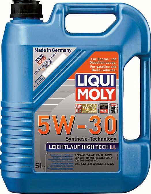 Сложно придумать более современный состав для защиты от износа двигателя, чем новое универсальное синтетическое и маловязкое моторное масло от Liqui Moly – Leichtlauf High Tech LL 5W-30. Масло обеспечивает более широкий охват современных моделей автомобилей иностранного производства. В том числе и собранных для российского рынка. Максимально быстрое распространение при запуске двигателя и минимальное трение обеспечивают предельно высокий срок службы двигателя при ежедневной эксплуатации. Свойства продукта позволяют снизить потребление топлива и, собственно, самого масла. Отлично подходит для двигателей с турбонаддувом, катализаторами и под высокие интервалы замены. Удовлетворяет стандартам API и ACEA.