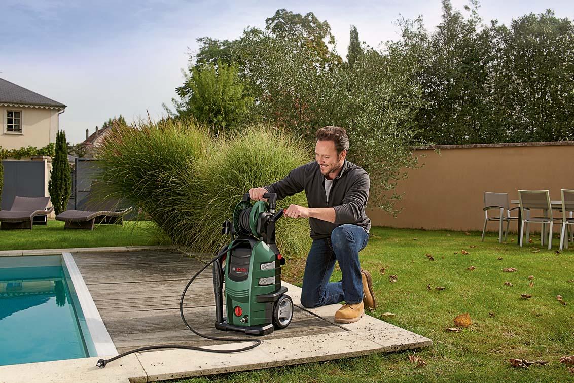 Из чисто автомобильных аксессуаров мойки высокого давления давно превратились в универсальные приспособления. И мойка Bosch AQT 150, которая будущей весной поступит в продажу, не исключение. По сути, это многофункциональный бытовой комплекс, который справляется с различными задачами. Основные преимущества Bosch AQT 150 – мощность (2200W, рабочее давление 150 бар), компактность, надёжность (цельнометаллический двигатель) и, конечно же, мобильность. Прибавить сюда высокую производительность (до 500 л/час), возможность подогрева воды, и лучшего помощника для удаления загрязнений с автомобиля, велосипеда, квадроцикла, садовых дорожек, стен, окон и бассейна просто не найти.