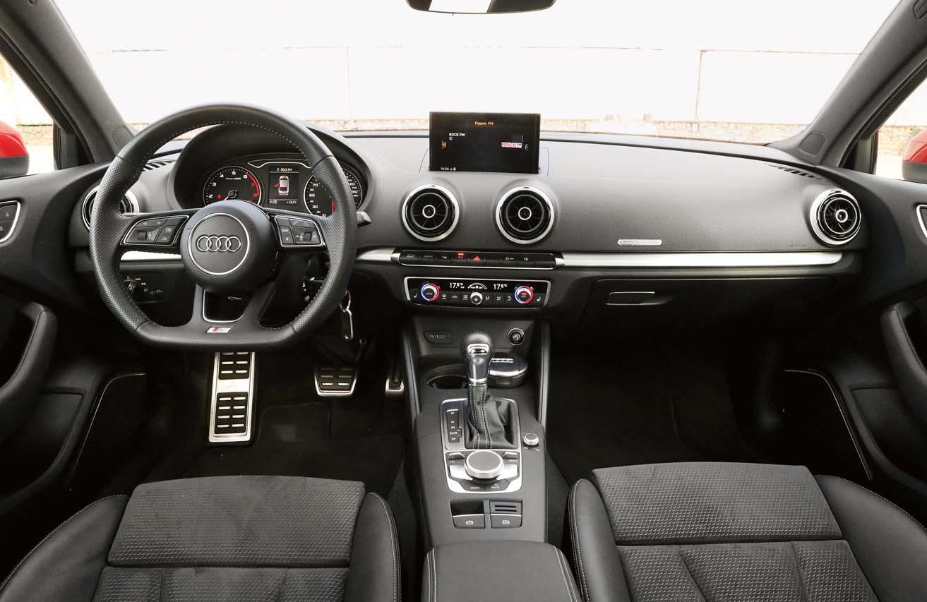 Зато кроме странных фар во время этого рестайлинга модель получила много чего еще, причем вызывающего гораздо меньше сомнений. Самое приятное – в салоне. Архитектура центральной консоли А3 следует той же логике, что у самых новых моделей, например, кроссовера Q5. Расположение кнопок, алгоритмы управления всеми системами – все как у «жемчужин» модельного ряда Audi. Настолько современной архитектурой, между прочим, не может похвастаться даже седан А6, у которого управление, например, той же информационной системой MMI реализовано менее удобно. А ведь все это инженеры Audi умудрились сделать в ограниченном пространстве. А3, как ни крути, автомобиль не слишком большой – и совсем уж лишнего места под кнопочки в салоне нет. Но несмотря на то, что, например, экран вынесен далеко на переднюю панель, а подстаканники запрятаны в угол, с эргономикой проблем нет ни малейших. Вытащить кофе, когда трансмиссия в режиме «паркинг», – пожалуйста, рычаг КП не мешает, как это бывает в некоторых других автомобилях.