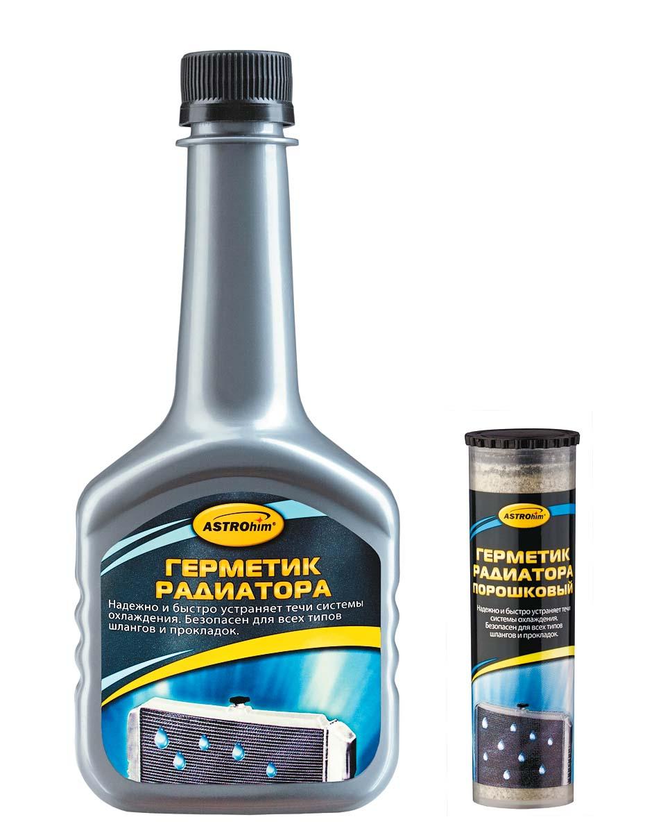 Нам удалось подобрать несколько средств, способных быстро решить проблему с протечкой и при этом не навредить. Одним из них стал препарат от ASTROhim. Главная особенность этого герметика радиатора – его способность работать локально, именно в зоне соприкосновения с воздухом. Иными словами, он вступает в реакцию только в месте протечки. Активные полимеры этого состава содержатся во взвешенном состоянии, что исключает возможность их выпадения в осадок и налипания на внутренних стенках системы охлаждения. Благодаря этому герметик не забивает систему и не меняет свойств охлаждающей жидкости. Испытания доказали: продукт эффективно устраняет течи системы охлаждения диаметром до 3 мм, действуя при этом быстро и безопасно. Средство выпускается в жидкой форме в виде присадки (флакон 300 мл) и в виде порошка.
