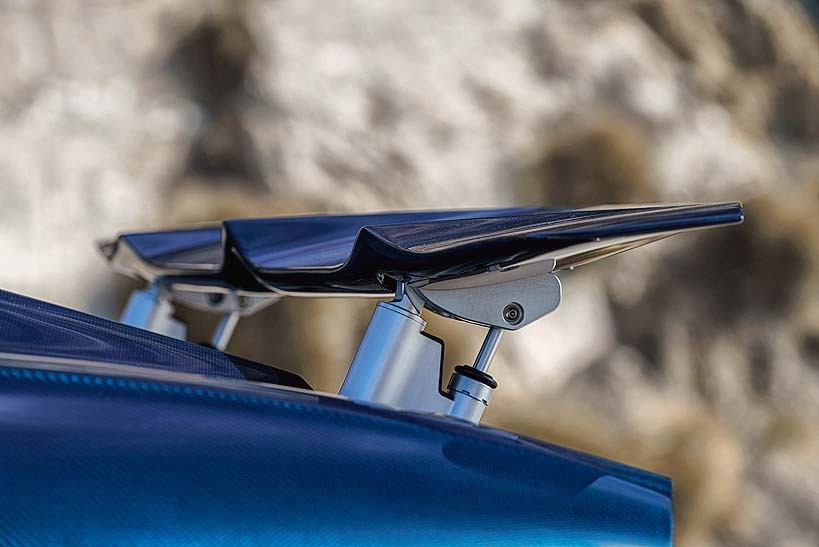 Chiron – нечто запредельное как при разгоне, так и на торможении: система предусматривает четыре углеродкерамических диска (диаметр передних 420 мм) и вклад заднего антикрыла. Когда с силой нажимаешь педаль тормоза, крылышко встает поперек потока воздуха и превращается в аэродинамический тормоз, обеспечивающий замедление на уровне 2 g. Поэтому суперкар массой под две тонны требует ограниченной дистанции для остановки.