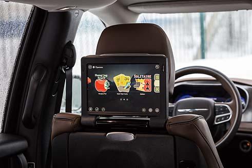 Но ведь не ради водителя все это затевалось, так? Главные люди в Pacifica – пассажиры, поэтому самое занимательное находится за сдвижными дверями минивэна. Их две и открываются они автоматически – водителем из салона или нажатием на ручки снаружи (электропривод входит в дополнительный пакет за 25 000 рублей). Для российского рынка предлагается только семиместная версия – в центре салона расположены два отдельностоящих кресла, а на заднем диване могут сесть еще три пассажира. При этом места на «галерке» на удивление много – трое взрослых разместятся без проблем. Но приятней всего, конечно же, сидеть на втором ряду. Само кресло очень удобное, жаль только, что лишено продольной регулировки. В спинках передних сидений спрятаны столики и мониторы, которые в любой момент можно сложить. (опция за 130 000 рублей). Просмотром фильмов и прослушиванием музыки список развлечений не ограничивается – можно поиграть во встроенные игры, среди которых есть и забава со знакомым каждому любителю путешествовать с детьми названием «Мы уже приехали или нет?».