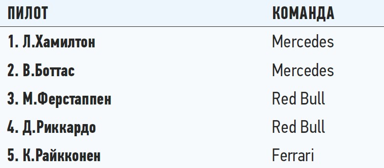 Положение в чемпионате: личный зачет пилотов