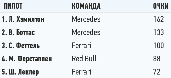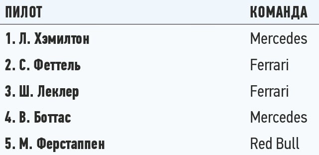 Положение в чемпионате: личный зачет пилотов