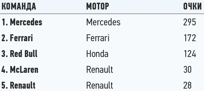 Положение в чемпионате: Кубок конструкторов