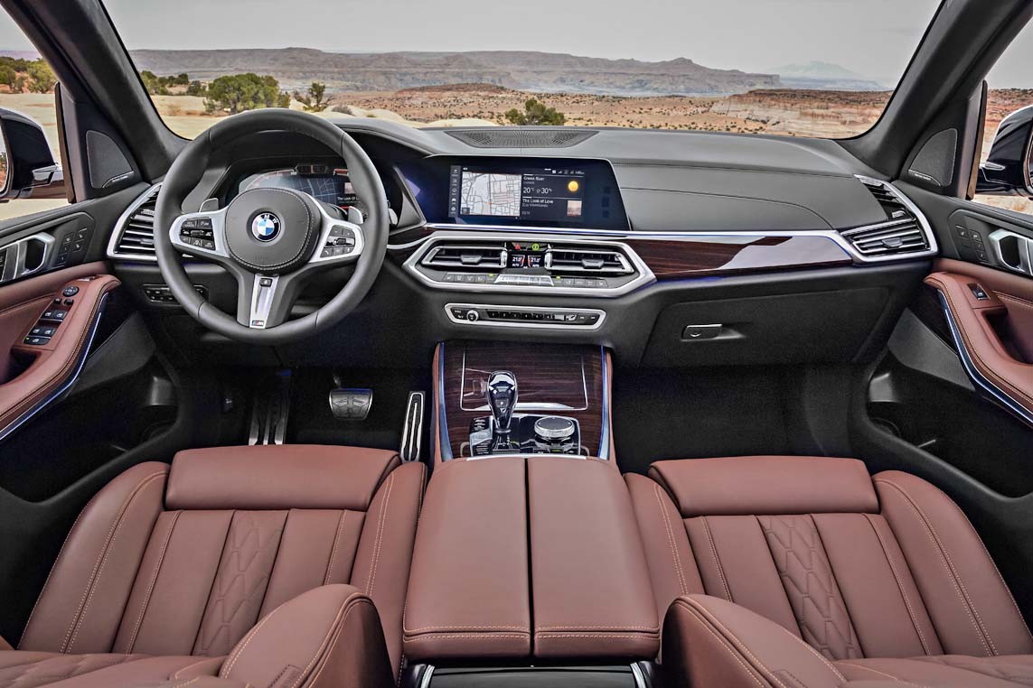 За доплату доступен третий ряд сидений. Двухсекционной крышкой багажника можно командовать кнопкой на передней панели или с помощью ключа BMW Display Key. Дебютирует на BMW X5 и виртуальная приборная панель – BMW Live Cockpit Professional. Обещают, что новую приборку включат в список стандартного оснащения.