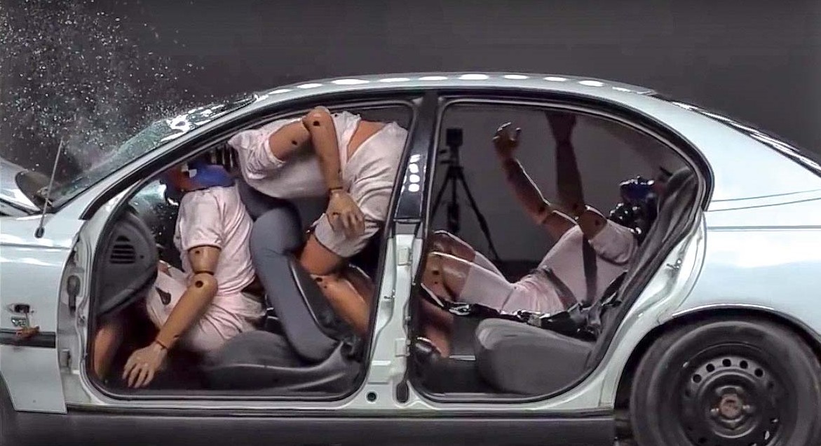 Что происходит при фронтальном ударе с пассажирами второго ряда