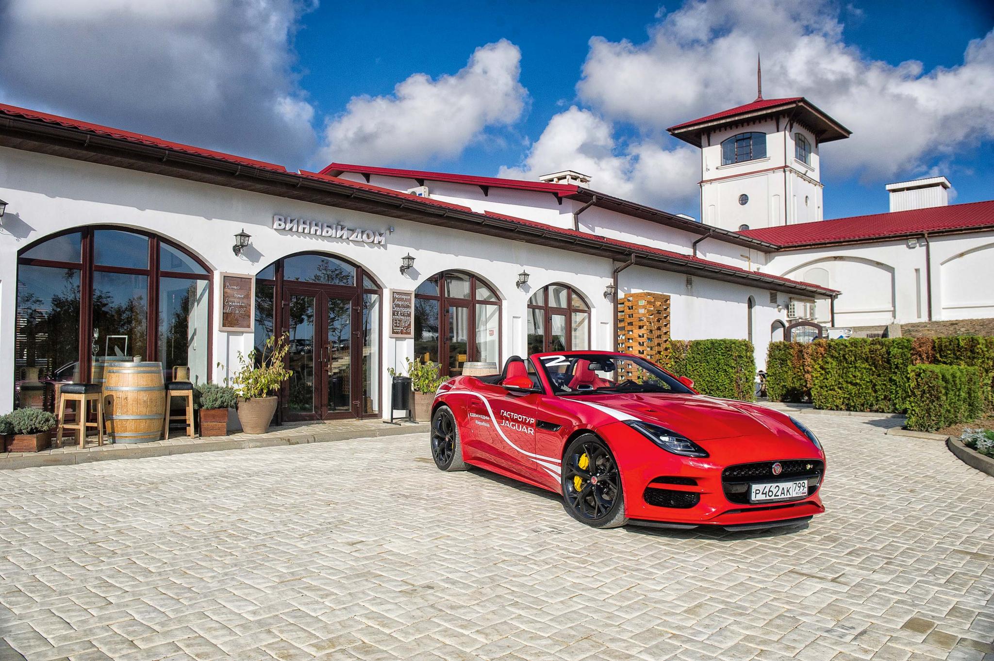 Жаркий южный климат способствует не только созреванию винограда, но и провоцирует выбрать в качестве автомобиля для путешествия машину без крыши. В идеале это должен быть 380-сильный Jaguar F-Type, непременно цвета красного вина «Ликурия» из долины Лефкадия. Именно туда мы и направились из Краснодара, оглашая окрестности рыком выхлопной системы и наслаждаясь лучами давно позабытого под серым московским небом солнца. Дорога приятно удивила качеством асфальта и расслабленным трафиком. Благодаря этому удалось в полной мере насладиться характером кабриолета: его тяжелым, но отзывчивым рулем и страстным откликом на нажатие педали акселератора. Для передвижения по территории виноградника машину решено было сменить. Кроссовер Jaguar F-Pace отлично подошел для этой цели, благодаря его проходимости удалось насладиться потрясающими видами и попытать счастья в ловле карпов в водах красивейшего озера. Ездовым комфортом для этого жертвовать не пришлось – «паркетник» без проблем преодолел грунтовую дорогу не самого лучшего качества.