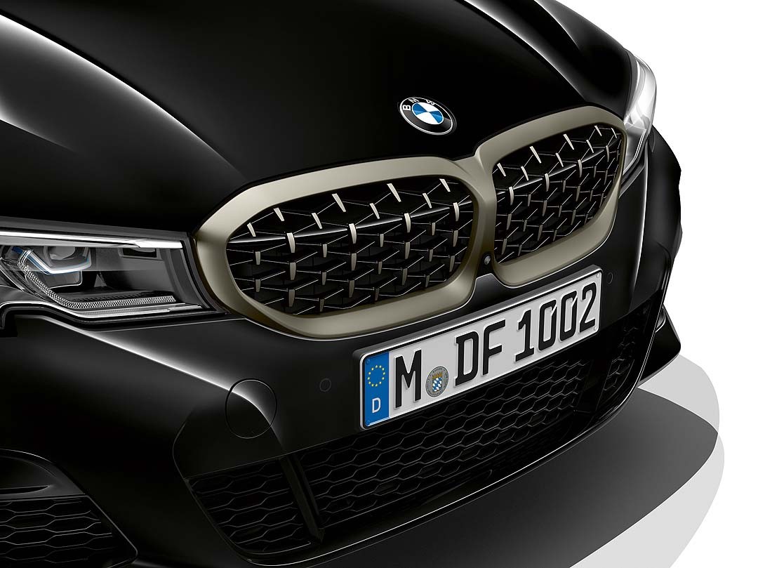 Отличить спортивную модификацию «трешки» от обычной версии просто. Модификация М получила большие воздухозаборники в переднем фартуке, особый решетчатый «гриль» и выделяющийся задний спойлер. Для придания автомобилю большего «драматизма» дизайнеры решили окрасить некоторые детали в цвет Cerium Grey – им выделили наружные зеркала, воздухозаборники, окантовку решетки радиатора, выхлопные трубы и знак модели.