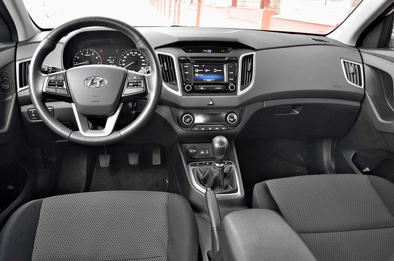 Возможностей 121-сильного 1,6-литрового мотора хватает на то, чтобы размеренно перемещаться в городском потоке и поддерживать крейсерскую скорость на трассе, а вот рискованными маневрами на такой Creta лучше не увлекаться – чрезмерной живостью силовая установка не отличается. При необходимости передвигаться динамично приходится поддерживать высокие обороты двигателя и активно работать рычагом 6-ступенчатой «механики». На случай преодоления влажного после обильных летних дождей дачного проселка предусмотрен полный привод с возможностью блокировки межосевой муфты. На пользу практичности идет и защитный пластик по низу кузова, и большой дорожный просвет – к городским бордюрным камням можно парковаться впритирку без опаски.
